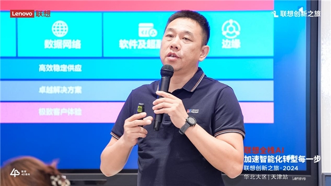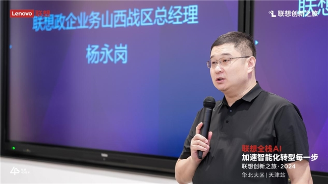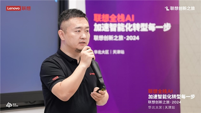 政企业务山西战区高级产品销售经理颉强在向各位嘉宾介绍时表示:“2024年,作为AI应用的元年。联想的使命就是让人工智能走进千家万户、千行百业,加速AI技术的普惠应用。为此,我们基于‘端-边-云-网-智’新IT技术架构,构建了 ‘全栈AI’战略布局,包括AI终端、AI基础设施以及AI解决方案与服务,以领先的产品、解决方案及服务,加速智能化转型每一步,让世界充满AI。”