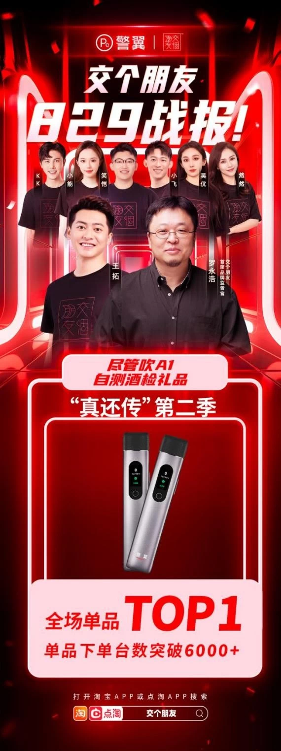 近日,警翼携手直播大咖“交个朋友”,共同掀起一场线上直播盛宴,为广大送礼达人们带来前所未有的惊喜选择!在这场合作中,警翼革命性新品——“尽管吹A1”自测型酒检仪,在直播间掀起狂潮,成为粉丝争相追捧的焦点!连罗永浩老师都为之赞叹不已,亲自站台力荐!这不仅是一次产品的热销,更是一次品牌曝光的巅峰之作。警翼,正以破竹之势,强势进军礼品市场,为你我他打造一款暖心至极的送礼佳品,实现销售与品牌的双丰收!