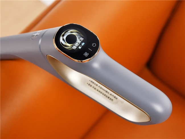 从外观来看,云鲸S2 Island整机采用深空灰配色,与上一代产品S2不同之处在于,操作杆手柄处、底座上都镶嵌了淡香槟色点缀,整体更有质感也更高级。
