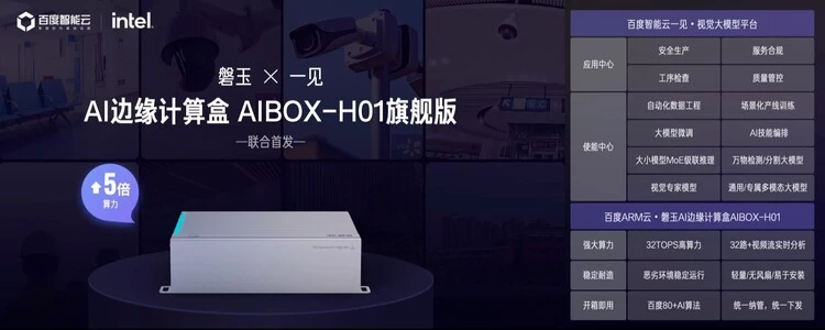 在中国边缘云市场规模快速增长的背景下,百度ARM云与百度智能云一见视觉智能平台联合首发AI 边缘计算盒旗舰版。该产品算力提升5倍,并集成了百度CV大模型能力,能够同时支持32路视频分析,和百度自有AI算法的下发和管理,满足企业在充分利旧视觉终端情况下,实现业务智能升级。该方案可广泛应用于智慧工地、智慧门店、智慧校园等实际业务场景。