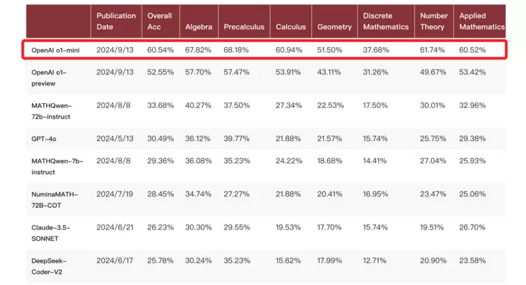 尤其是在北大给出的一项评测中,**o1-mini**模型的跑分比o1-preview还要高: