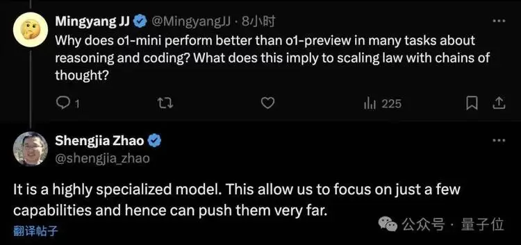 >o1-mini是高度专业化的模型,只关注少部分能力可以更深入。