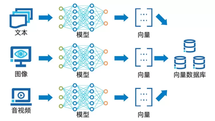 通过Embedding过程,这些技术能够将文本、图像、音视频等多种形式的数据转换成向量形式,并将其存储在向量数据库中。