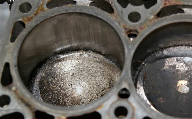 积碳本质上是汽油未充分燃烧后,在活塞表面留下的一层胶状物质。这层胶状物具有一定黏性,时间久了便会越积越厚,再加上发动机工作时内部高温烘烤,该胶状物被烧干变硬之后便成为了我们常见的积碳。