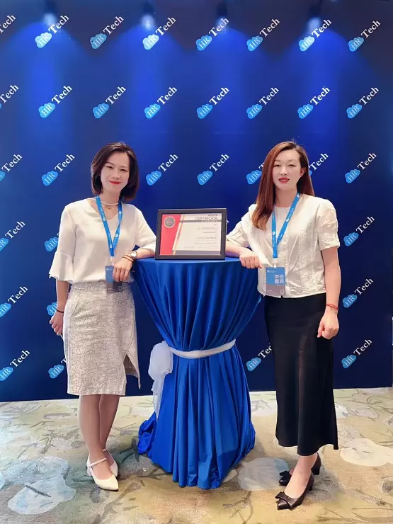 人资处高级经理刘丹丹(右一)、经理组长余丽婷(左一)代表公司出席颁奖典礼