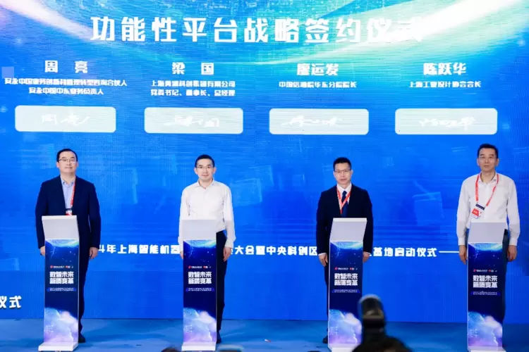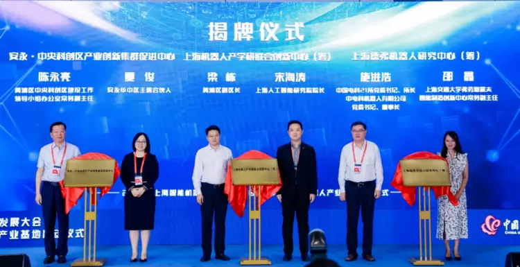 黄浦区副区长梁栋,中国电科21所党委书记/所长、中电科机器人有限公司党委书记/董事长施进浩,东浩兰生集团副总裁宁风,上海人工智能研究院院长宋海涛,上海交通大学特聘教授王皓,安永华中区主管合伙人夏俊,黄浦区中央科创区建设工作领导小组办公室常务副主任陈永亮共同启动“中央科创区机器人产业基地”。