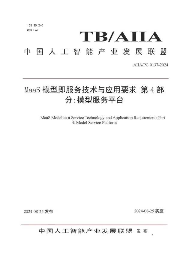 近期,由中国人工智能产业发展联盟(AIIA)MaaS工作组牵头,软通动力参与编写的《MaaS模型即服务技术与应用要求第4部分:模型服务平台》正式发布。中国人工智能产业发展联盟(AIIA)是由中国信息通信研究院牵头中国电子技术标准化研究院、国家工业信息安全发展研究中心、中科院自动化所、电子四院、电子一所等科研院所、高校、企业、社会组织等共同发起成立。