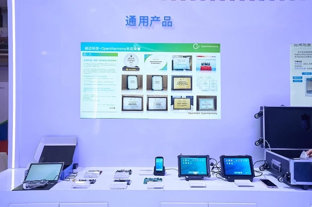 在通用产品展区,诚迈科技展示了搭载HongZOS的商用平板、开发板、行业主板等产品。其中,鸿诚志远龙系列开发板基于LoongArch龙架构指令集的龙芯2K1500工控芯片设计,具有高性能、低功耗、高集成度等特点;RK系列行业主板集成了电容触摸、红外触摸、红外遥控、USB键鼠等多种交互方式,广泛适用于工业自动化、智能设备、物联网等多个领域。
