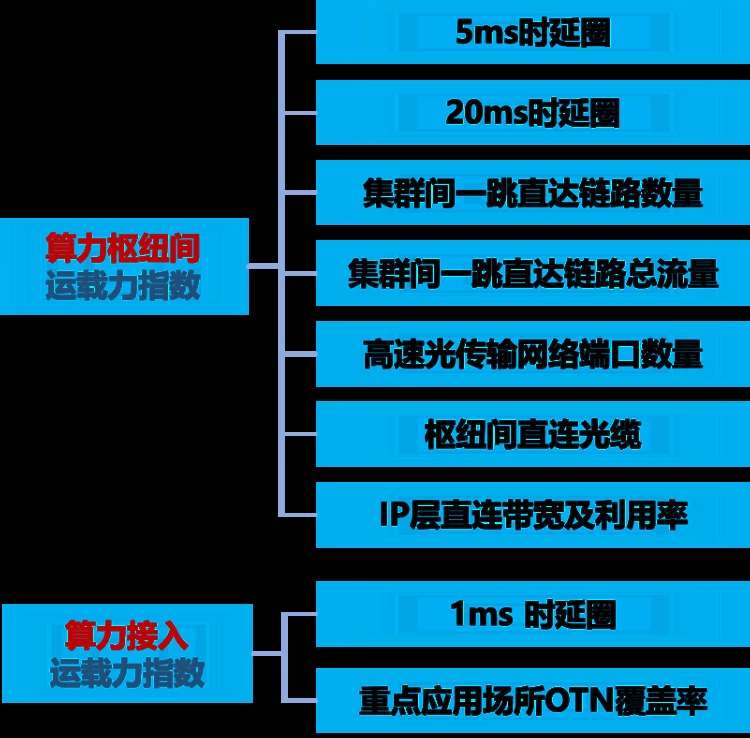 指标1:城市内基础电信企业和互联网服务企业的各核心数据中心节点间两两互联时延满足≤1ms;