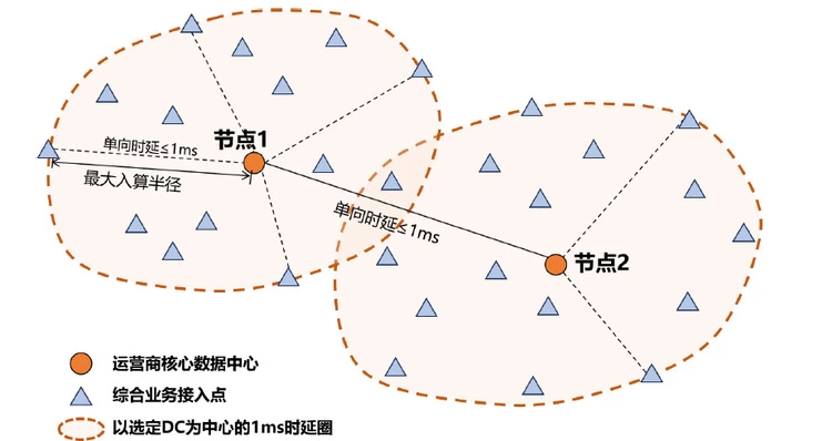 指标2:城市内基础电信企业的各核心数据中心节点1ms时延圈所覆盖的综合接入点数量之和占所在城市综合接入点数量总和的比例≥60%。