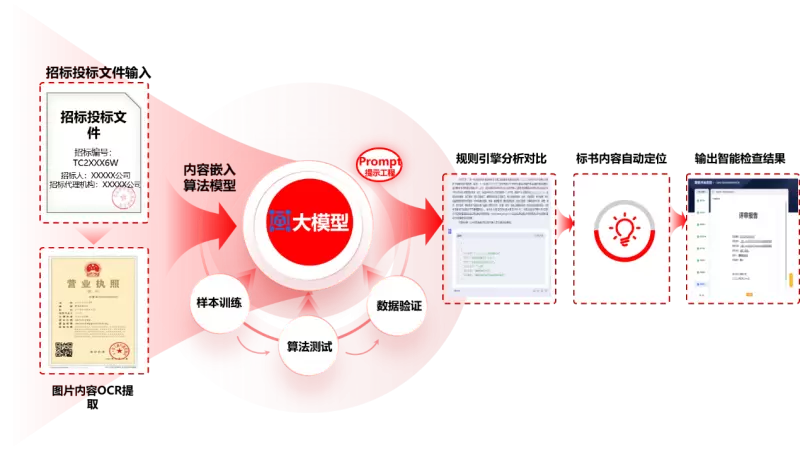 由于任何一个大模型都是人工训练出来的,即便是采购行业大模型,用在评标中,也做不了“法官”,只能做“律师”,像律师一样提供证据链和建议的结果,这个结果一定要是可解释的,是有过程的,最终让法官(评标专家)去决策。