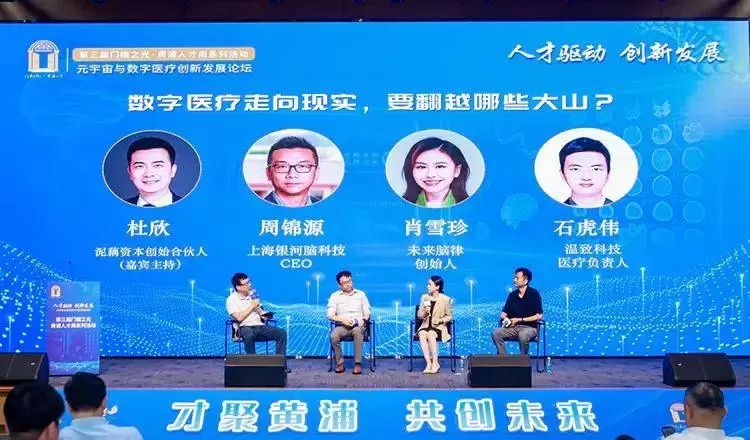 泥藕资本创始合伙人杜欣、温致科技医疗负责人石虎伟、未来脑律创始人肖雪珍、上海银河脑科技CEO周锦源就“数字医疗走向现实,要翻越哪些大山?”展开了热烈讨论,为推动行业健康发展提供了宝贵的思路与建议。