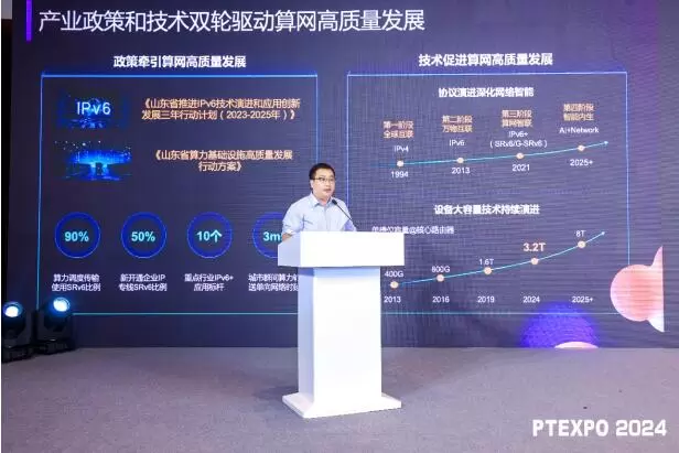 2024年9月26日,2024中国国际信息通信展览会期间,在推进IPv6规模部署和应用专家委员会主办的新质互联网创新发展论坛上,山东移动计划部相关项目负责人逯向军受邀发表了《智启九州,创新齐鲁:“九州”算力互联网构筑山东算网发展新底座》的主题演讲,重点分享了中国移动“九州”算力互联网在山东落地的阶段性创新成果及实践经验。