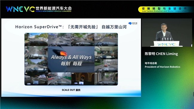 9月27日,2024世界新能源汽车大会在海口盛大启幕,大会以“低碳转型与全球合作”为主题,汇聚全球汽车产业界的众多参与者,共同探讨了新能源汽车领域的最新趋势、技术创新和可持续发展路径。智驾科技企业地平线总裁陈黎明博士在大会上展示了地平线Horizon SuperDrive™全场景智能驾驶解决方案(简称HSD)在全国范围内12座城市进行系统泛化能力的挑战测试成果,面对各具特色的城市路网规划,HSD实现了全国一致的顺滑拟人体验。