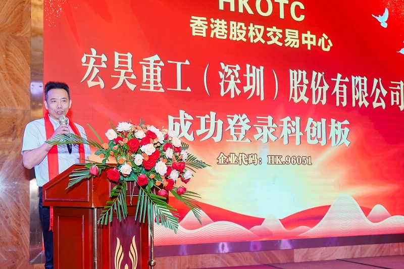 发布会伊始,在热烈的掌声中,宏昊重工集团董事长上台发表致辞。他指出,宏昊重工集团始终坚持以技术为核心,以市场为导向,致力于打造具有国际竞争力的矿山机械产业生态。此次正式登录OTC科创板挂牌,是集团发展的一个重要里程碑,也是迈向全球市场的新起点。董事长对一直以来支持和关注集团发展的各界人士表示衷心感谢,并表示集团将借助资本市场的力量,进一步加大研发投入,提升产品质量和服务水平,为客户创造更大的价值,为行业发展做出更大的贡献。