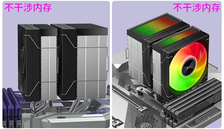 在兼容性方面,JF500和JF400全系都做了内存避让处理,不会干涉内存条的安装,高矮内存可以自由安装。也能让内存的灯效展现出来。