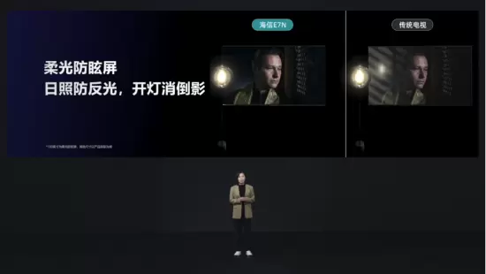 海信AI电视E7N系列搭载柔光防眩屏,能有效减少反光和眩光问题,无论是白天还是夜晚,都能享受到舒适沉浸的观赏体验。此外信芯AI画质芯片的加入,通过智能算法优化,进一步提升了画面的清晰度和色彩准确性,让每一帧画面都接近自然、细腻入微。