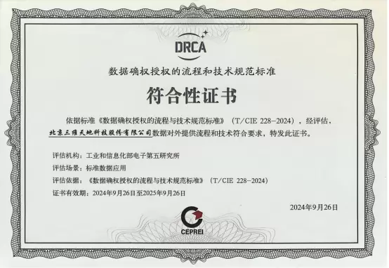 三维天地获首批数据确权授权标准符合性DRCA证书