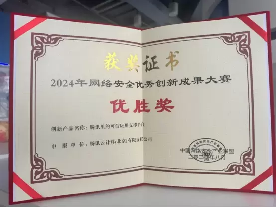 近日,中国网络安全产业联盟(CCIA)公布了“2024年网络安全优秀创新成果大赛”评选结果,腾讯里约可信应用支撑平台获得创新产品优胜奖。