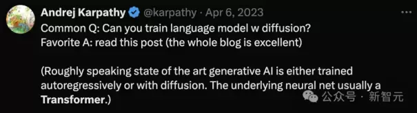 用AI大神Karpathy的话说:最先进的GenAI模型,要么是自回归训练,要么是扩散训练,底层的神经网络通常都是Transformer架构。