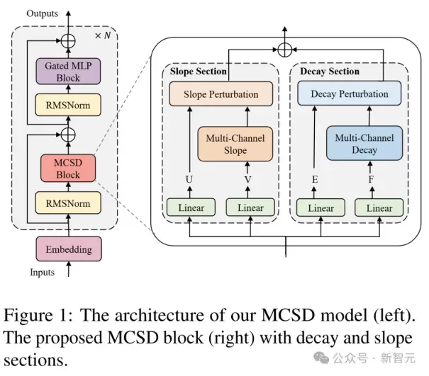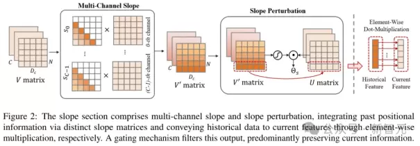 将slope和decay两部分的输出进行拼接后就得到了MCSD块的输出,这两者的组合使得模型既能关注到距离更近的历史信息,也不会丢失更远的长距离上下文,从而同时增强了局部和全局的特征提取。