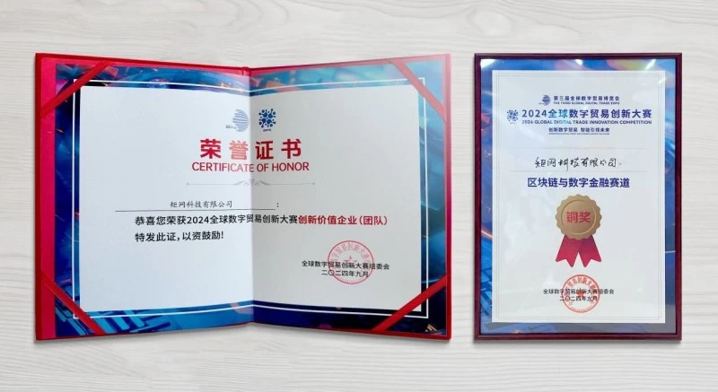2024全球数字贸易创新大赛创新价值企业(团队)证书与2024全球数字贸易创新大赛奖牌