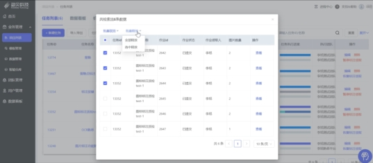 例如,当发现一批作业存在质量问题时,用户只需勾选有问题的任务,点击“批量驳回”或者“选中驳回”,Agent系统便会自动执行这一指令,将符合条件的作业全部驳回至重新标注流程。同样地,当确认一批作业无误后,用户也可以通过类似的方式将其批量释放至下一阶段。