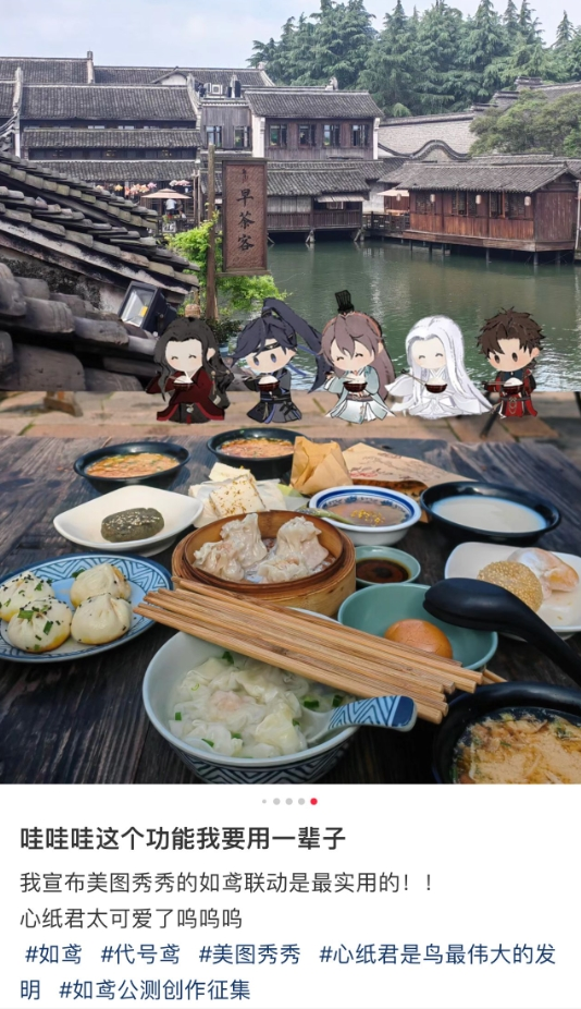 本次联动中,美图秀秀上线了《如鸢》贴纸,把广受玩家好评的心纸君加入其中,让玩家可以与他们合照,带他们一起旅行,堪称国庆期间最可爱的旅行搭子!