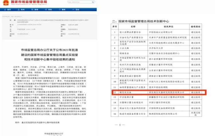 2024年9月5日,国家市场监督管理总局下发“市场监管总局办公厅关于公布2021年批准建设的国家市场监督管理总局重点实验室和技术创新集中验收结果的通知”(市监科财函[2024]410号),西高院筹建的“国家市场监督管理总局技术创新中心(输变电设备)(以下简称中心)”顺利通过总局验收并进入正式运行序列。