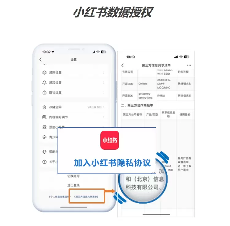 示例:小红书将“加和(北京)信息科技有限公司〞纳入第三方数据共享合作伙伴列表