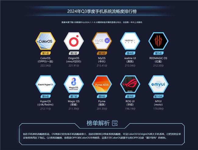 系统流畅榜:ColorOS再度夺魁,OV持续领跑