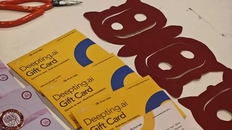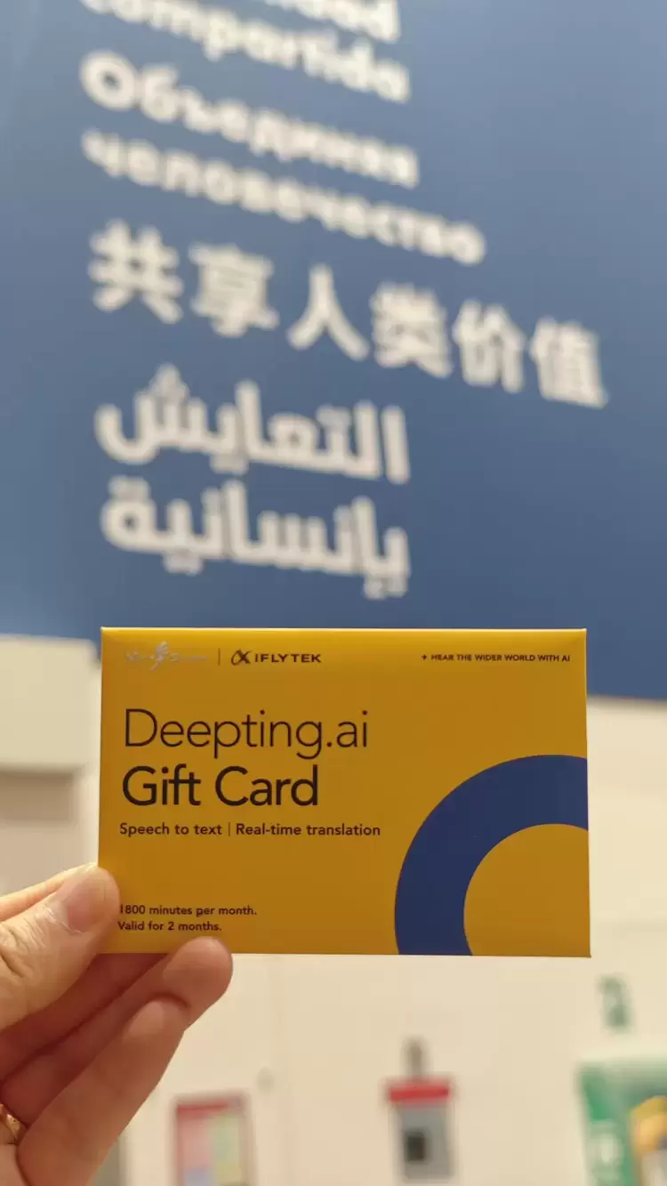 为积极推广科技助残,科大讯飞为本次活动提供讯飞听见海外版Deepting软件卡,听障人士可借助Deepting APP进行实时的多语种语音转写及翻译。在活动演出的沉浸体验区,来自世界各国的参会嘉宾及残障人士参观来自残疾人艺术团、西安美院特殊教育艺术学院的作品,并体验来自中国艺术的文明之美。在听障学生与外籍嘉宾的交流过程中,双方通过使用Deepting来实现语音转文字、法语翻译的无障碍沟通。