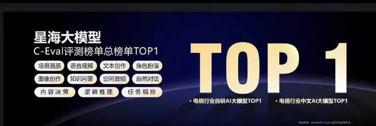 在满足用户需求的同时,星海AI大模型的交互能力也得到了专业机构的认可。9月20日,星海大模型在C-Eval评测总榜单中排名第一,成为大模型业界的实力担当。海信围绕 “视听越来越真实”、“交互越来越简单”、“运行越来越流畅”、“服务越来越多样”四个维度,正持续提升用户核心价值。