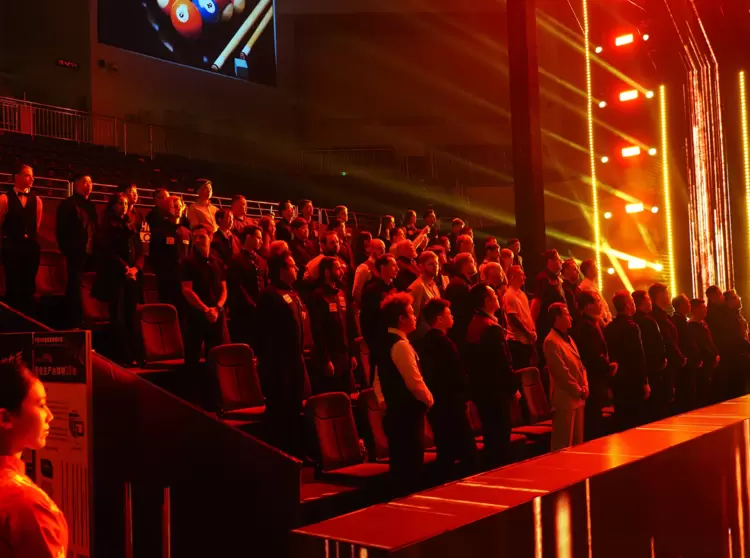 2024赛季,中式台球在大师赛的助力下,昂首阔步迈上了“中国征途·世界球同”的更高起点。本赛季乔氏台球再度加码,甲级分站赛冠军60万奖金、超级分站赛冠军200万奖金,都是推中入奥征程中向前进的一小步。18载峥嵘伏笔千里,无数次的努力与跋涉都奔赴在梦想的征途上。中式台球这项民族运动的崛起,应运于伟大的时代,离不开中国人和而不同、美美与共的精神内核,更离不开走向富强的伟大祖国。在这激动人心的时刻,全体人员起立,面向国旗行注目礼,奏唱《中华人民共和国国歌》!