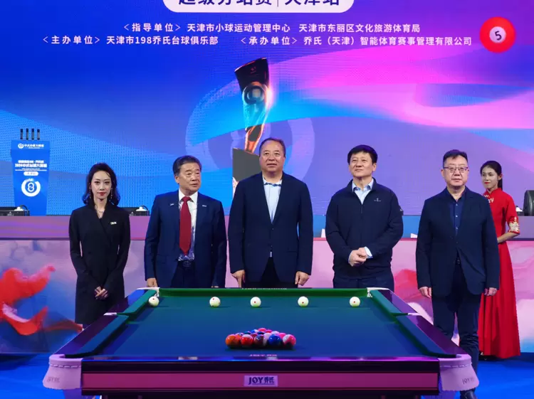 天津市体育局局长、党组书记薛辉;天津市东丽区政协主席刘伟;秦皇岛乔氏台球集团创始人董事长兼CEO乔元栩;天津市东丽区区委常委、宣传部部长秦陈;天津市东丽区副区长周青;天津市委宣传部旅游处处长张建鹏;天津市体育局办公室主任陈曦;天津市小球运动管理中心党总支书记、主任夏青;天津市东丽区文化旅游体育局党组书记、局长魏俊香;天津尊爵浩森198乔氏台球俱乐部品牌创始人索晨等领导嘉宾出席了本站比赛开幕式。