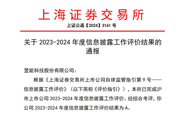 - 喜报!昱能科技获评上交所信息披露工作A级评价
