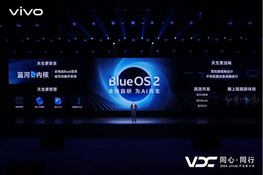 继去年11月vivo首次发布自研蓝河操作系统(BlueOS)之后,今年的开发者大会上,能力全新升级的蓝河操作系统2同步亮相,其搭载着基于Rust语言编写的实时操作系统内核——蓝河内核,其具备安全、通用、高性能的特性,能够兼容不同的嵌入式平台,具备完整的系统调度、内存管理、文件系统、网络和设备管理能力。而蓝河操作系统2也将成为行业首个全栈由Rust语言编写的操作系统。