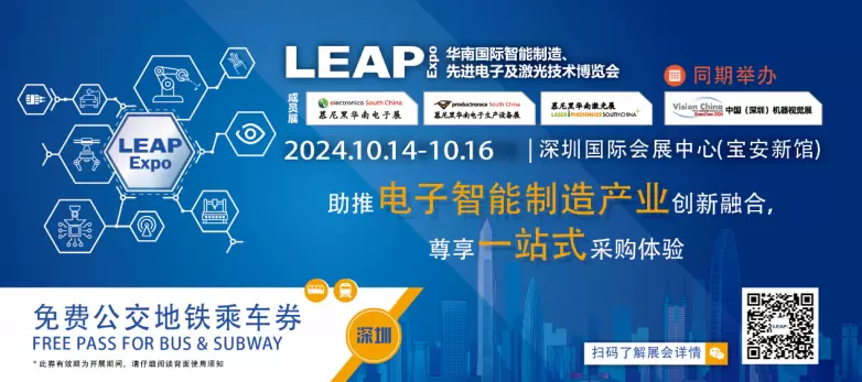 2024华南国际智能制造、先进电子及激光技术博览会(简称LEAP Expo)旗下成员展慕尼黑华南电子生产设备展将于10月14-16日,再次登陆深圳国际会展中心(宝安新馆)。展会将围绕自动化与运动控制、测试测量、表面贴装、点胶注胶&化工材料、线束加工、半导体封装及制造、miniLED封装生产线等领域,立足行业前沿,聚焦新旧动能转换,为电子智能制造行业提供一个横跨产业上下游的专业交流圈。