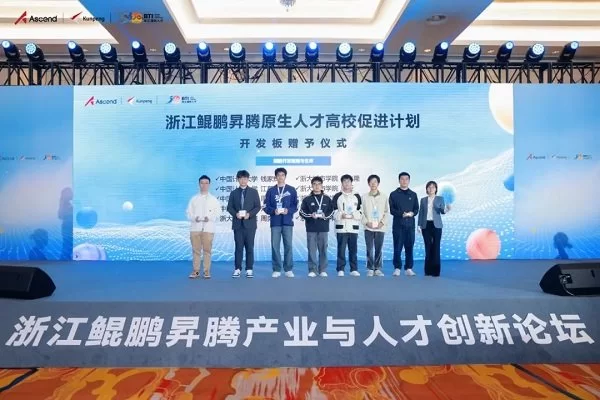 聚焦高校人才培养与汇聚,浙江鲲鹏昇腾原生人才高校促进计划正式启动,华为计算高校与开发者生态发展部部长崔玫芳为首批高校开发者赠予开发板,旨在鼓励高校人才及开发者开展教学实验、竞赛实践、科技创新。此外,第八届华为 ICT 大赛浙江省赛颁奖暨第九届大赛启动,为浙江高校学生提供国际化竞技和交流平台,培养学生运用新技术、新平台的创新创造能力。
