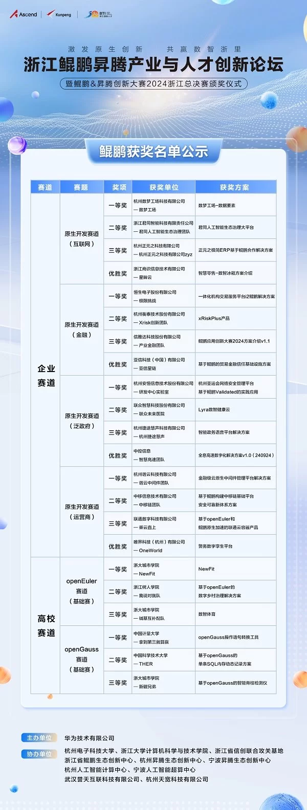 鲲鹏应用创新大赛 2024 浙江区域赛授奖