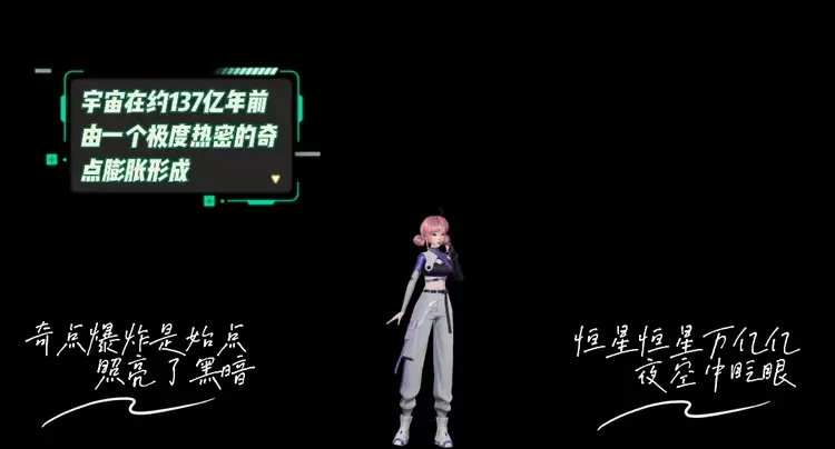 《AI科普音乐会》由《仰望星空》《面朝大海》和《AI的声音》三幕组成、分别对应宇宙、海洋、人工智能三大科普主题。目前第一个篇章《仰望星空》已经开启,并正在合肥市科技馆(蜀西湖馆区)全息剧场测试上映。跟随AI虚拟歌手Luya,我们将探索浩瀚的宇宙,了解宇宙的起源、神奇的天体、遨游太阳系,了解八大行星的特点、揭示璀璨星空的奥秘。