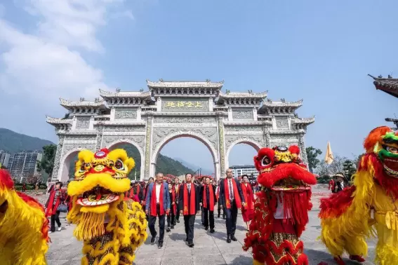 中午时,景区二号礼堂准备了丰盛的午宴。公司副董事长陈吉根先生、总裁王淑姹女士、发展委常委王一尊先生分别上台致辞,表达了景区在蓬勃发展的当下,更注重以创新的理念来弘扬优良的中华传统文化。