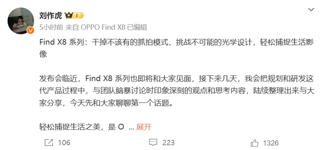 以上在2024 OPPO超影像大赛的获奖作品,也是OPPO手机拍照实力的最好诠释,OPPO一直致力于帮助用户轻松捕捉生活之美,在理想状态下,用户只需要按下快门,手机便能自动处理好画面的光影细节,呈现出一张“氛围感”大片。然而精彩的瞬间总是转瞬即逝,OPPO高级副总裁、首席产品官刘作虎表示,下一代OPPO Find X8系列,OPPO要干掉一种本不该存在的“抓拍”模式,让大家能够更轻松的抓拍精彩瞬间。