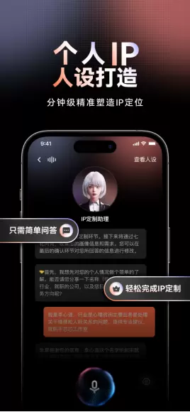 人设打造功能方面,用户可在手机端与万兴播爆IP定制助理互动问答,明确IP人设的画像信息和营销需求,通过百亿级IP知识参数的AI智能分析能力、海量营销案例和行业知识库沉淀,智能化打造个性化IP人设。