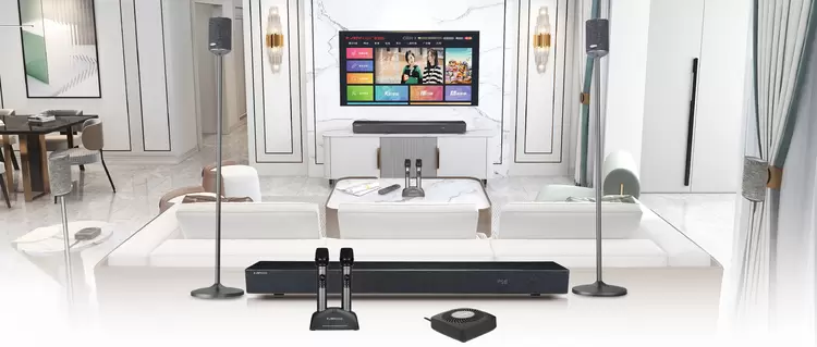 需要提升小空间的氛围感,当代客厅需要一套怎样的影K娱乐系统?要构建沉浸式家庭影院声效的器材清单有哪些?其实何需“清单”如此繁琐,小编这里有件“宝物”,一步即可实现以上需求。