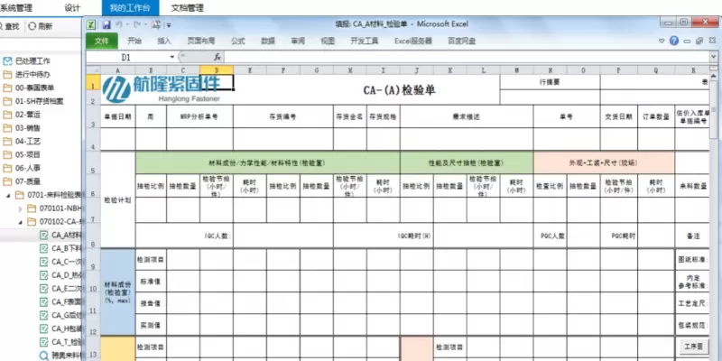 勤哲Excel服务器自动生成紧固件生产企业全方位数据管理系统
