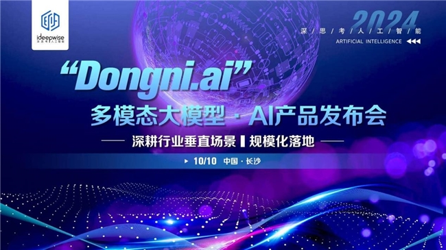 深思考人工智能(iDeepwise.ai)于2024年10月10日在长沙湖南大数据交易所,成功举办了以“深耕行业垂直场景,规模化落地”为主题的云、端、边侧AI产品发布会。本次发布会发布的产品矩阵简单概括是“一个中心(入口),两个基本点(垂直场景)”,即:以深思考的云侧Dongni.ai大模型和端侧TinyDongni大模型为基础模型,形成一个搜索引擎入口,聚焦两个深度垂直场景“智能终端”和“重疾早筛”,具体产品包含“一个中心(入口)”AI多模态搜索引擎“Dongni.so”;“智能终端“场景产品:AI PC Suite套件、AI 摄像头、AI显微镜、”,“重疾早筛“场景产品:巧思、慧眼等产品。发布会期间,华为、九阳、深开鸿、仪景通、广和通、艾迪康、哔哩哔哩、Kika、冰川网络、盛视等众多产业合作方和投资机构到场出席并参与发布会活动。