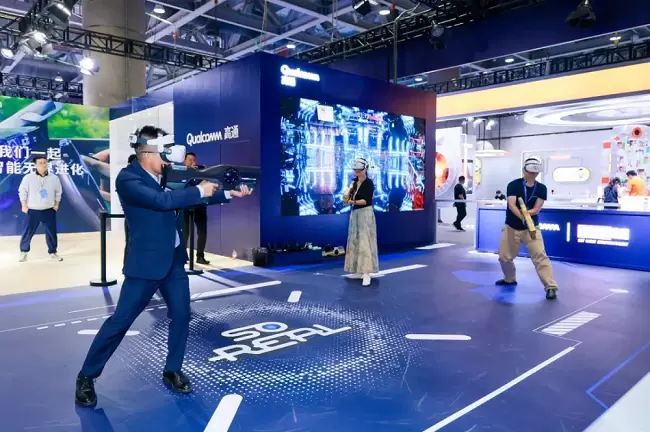 凭借在无线连接和移动计算领域积累的技术专长,高通正通过与更多产业伙伴的协作,将合作范围从智能手机,扩展到汽车、PC、XR、物联网等更广泛领域。本次展会中,高通携手中国移动、当红齐天,在近百平米的展会空间中,呈现5G-A赋能的多并发大空间XR竞技游戏体验,免背包、去线缆、可支持多路XR用户同时在线,让玩家能够畅游5G+XR虚拟世界。