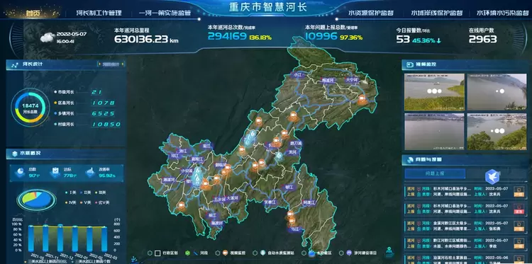 2022年4月,全国最大的省级智慧河长平台——重庆市智慧河长平台上线,该平台由重庆联通承建,让重庆市的17500多名河长实现了对管辖河流的“天上看、云端管、地上查、智慧治”。