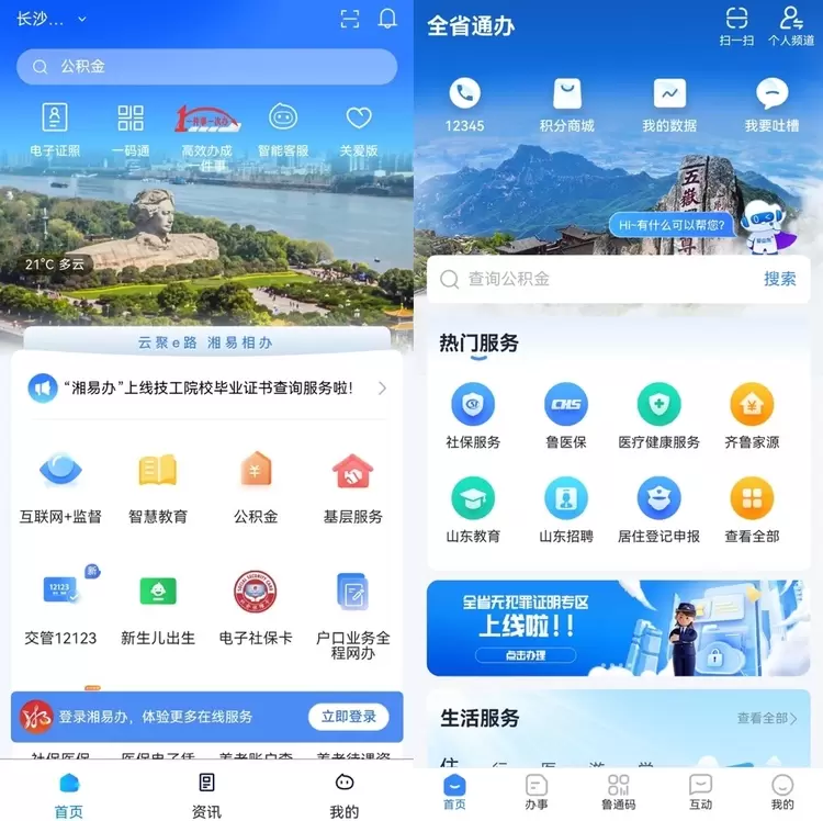 湘易办App是湖南省委、省政府打造的全省统一的“掌上办事”窗口,覆盖50个省直属单位、14个市/州及湘江新区的社保、公积金、交通、养老、婚姻、住房、财政等5000余项生活服务。爱山东App则是山东省整合各级职能部门建设的“互联网+”便民服务平台,旨在通过接入社保医保、交通服务、违章处理等与公众服务密切相关的服务事项,实现让群众在移动端下“下载一次,办全部事”。两款应用的推出,大大提升了湖南和山东两省政务服务的效率和体验,也是推动当地构建“数字强省”的重要举措之一。